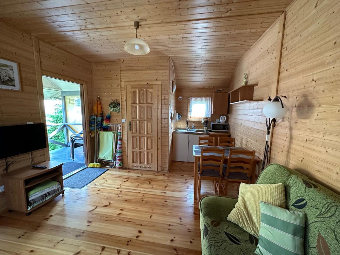 Dom z 1 sypialnią. Boasting a private entrance, this holiday home also comes with 1 living room, 1 separate bedroom and 1 bathroom with a shower. Guests will find a stovetop, a refrigerator, kitchenware and a microwave in the fully equipped kitchenette. The holiday home also includes a barbecue. Featuring a terrace with garden views, this holiday home also features a wardrobe and a flat-screen TV. The unit has 4 beds. Dom wakacyjny - 4 osobowy. Powierzchnia pokoju ok.: 28 mkw.
