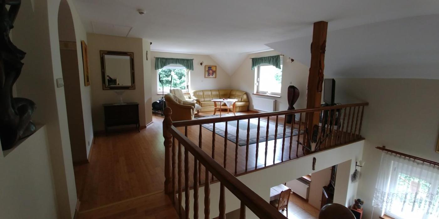 Dom z 4 sypialniami. This holiday home provides a fireplace. This spacious holiday home comprises 2 living rooms, 4 separate bedrooms and 2 bathrooms with a walk-in shower and bathrobes. Guests will find a stovetop, a refrigerator, a dishwasher and kitchenware in the kitchen. The holiday home also provides guests with a barbecue. The holiday home features a washing machine, a private entrance, a tea and coffee maker as well as a terrace with garden views. The unit offers 10 beds. Dom wakacyjny - 13 osobowy. Powierzchnia pokoju ok.: 240 mkw.